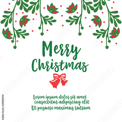 Obraz premium Greeting card design of merry christmas, with pattern of leaf wreath frame. Vector