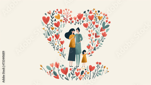 Obraz premium Greeting card designs for Mother's Day and International Women's Day with illustrations, hearts, mother and child, flowers