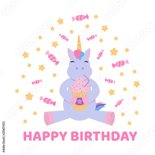 Fototapeta premium Greeting card with a unicorn for a Birthday.