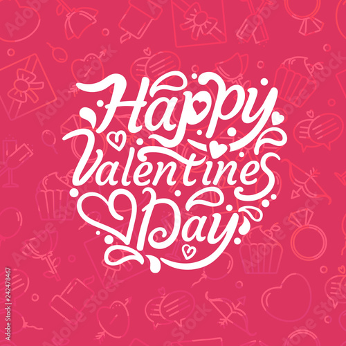 Fototapeta premium Greeting card with sign Happy Valentine's Day text. For banners,wallpapers and craft paper.Vector illustration