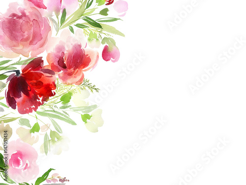 © Karma, Fototapeta premium Greeting card with watercolor flowers handmade.