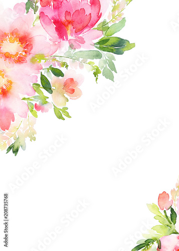© Karma, Naklejka premium Greeting card with watercolor flowers handmade.