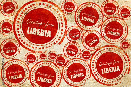 Obraz premium Greetings from liberia, red stamp on a grunge paper texture