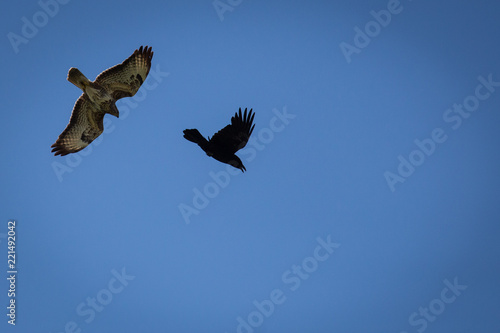 Obraz premium Greifvogel und Krähe
