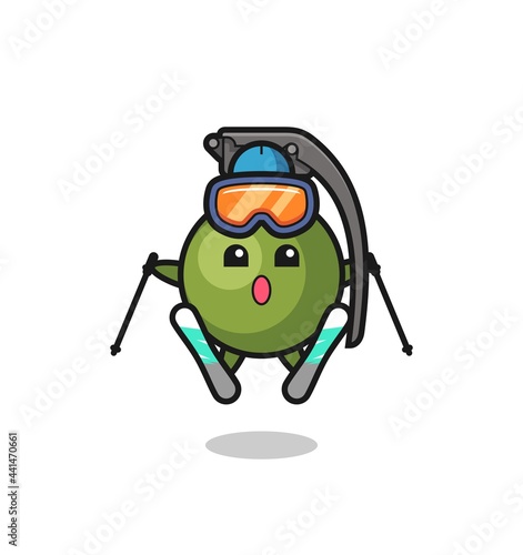 Obraz premium grenade mascot character as a ski player