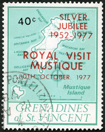 © Popova Olga, Naklejka premium GRENADINES OF SAINT VINCENT - 1974: shows Map of Mustique Island