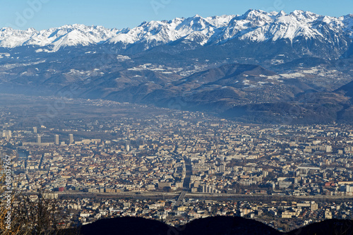 Obraz premium Grenoble city and Belledonne mountain range landscape