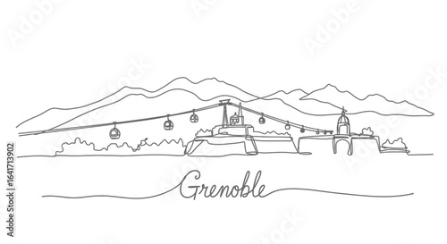 Obraz premium Grenoble Skyline Cityscape France Continuous line.