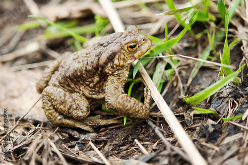 Fototapeta premium grenouille jaune et marron au bord d'un sentier