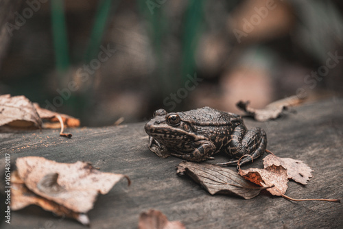 Fototapeta premium Grenouille sur un tronc de bois en automne
