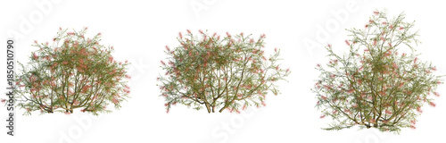 © DH Tree Stock, Obraz premium Grevillea banksii trees, elevation view, cutout, front, isolate, Flowering shrubs with pink blossoms on transparent background
