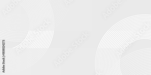 Fototapeta premium Grey abstract background with white circle lines. Geometric stripe line art design. Minimal lines pattern. Modern futuristic concept.
