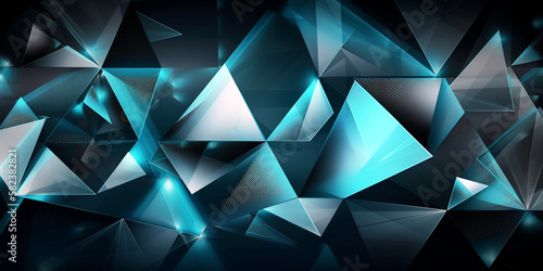Obraz premium Grey and Blue Dark 3D Glowing Triangle Shaped Lit 3D Pyramids, Geometric Shapes Pattern, Abstract Futuristic Background, Texture Design - Made with Generative AI