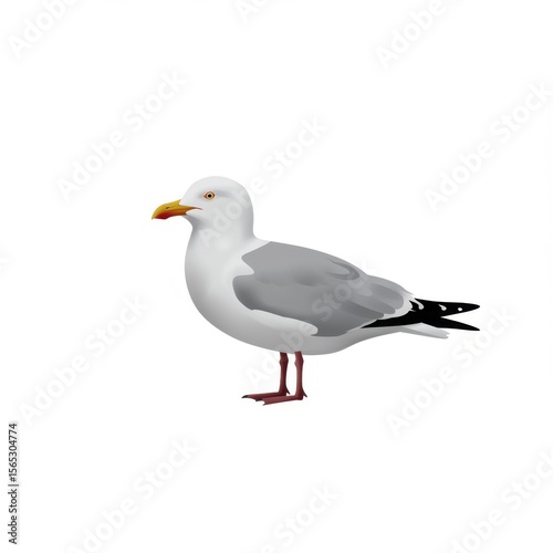© Meloncholy, Fototapeta premium Grey and White Seagull Bird Profile on White Background