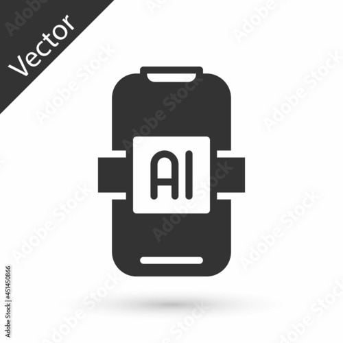 © vector_v, Obraz premium Grey Artificial intelligence AI icon isolated on white background. Machine learning, cloud computing, automated support assistance and networks. Vector
