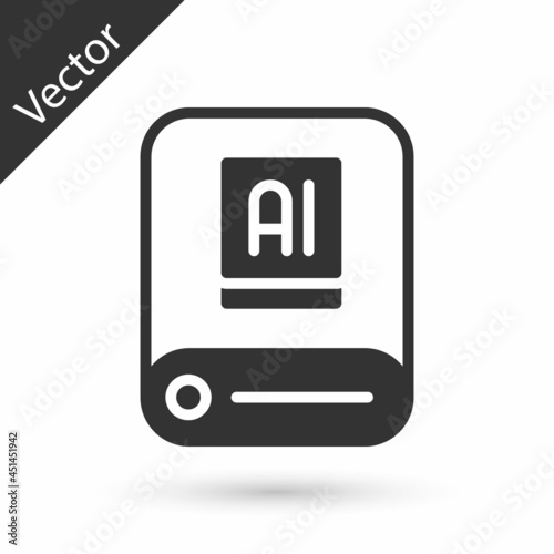 Fototapeta premium Grey Artificial intelligence AI icon isolated on white background. Machine learning, cloud computing, automated support assistance and networks. Vector