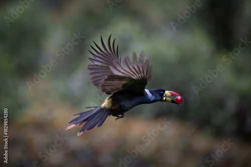 © Herlinde, Fototapeta premium Grey-breasted Mountain-Toucan (Andigena hypoglauca), flying, Papallacta, Ecuador