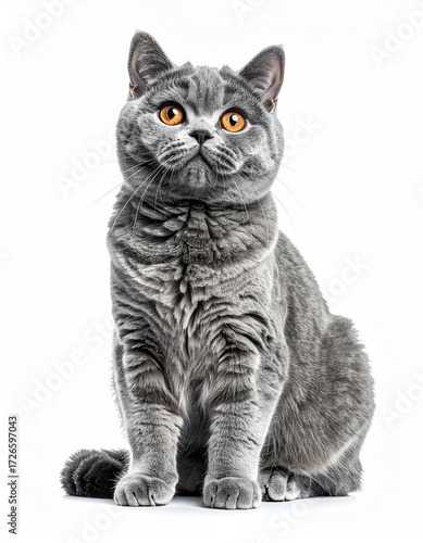 © febria, Fototapeta premium Grey cat sitting, looking up