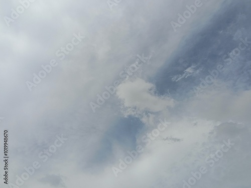 © Suraphi, Fototapeta premium Grey clouds on blue sky in daytime. Cloud background. Presentation.