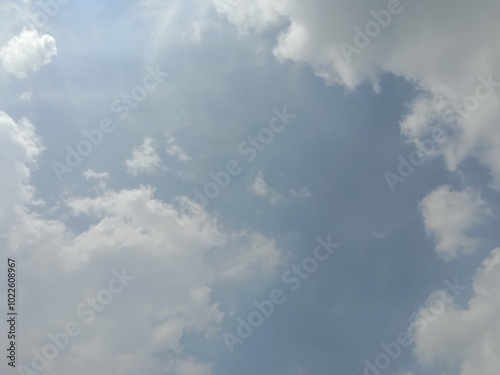 © Suraphi, Fototapeta premium Grey clouds on blue sky in daytime. Cloud background. Presentation.