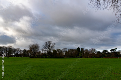 Fototapeta premium Grey clouds over West Park in Wolverhampton, West Midlands, UK