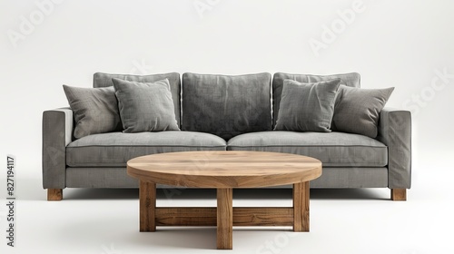 Fototapeta premium Grey Couch and Wooden Coffee Table