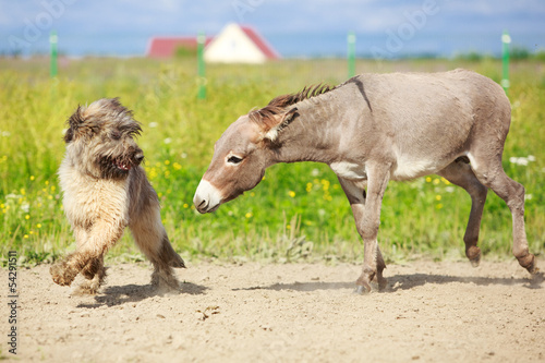 © DragoNika, Fototapeta premium Grey donkey and briard dog
