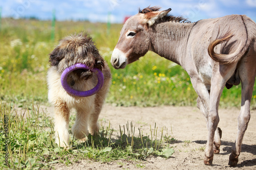 © DragoNika, Fototapeta premium Grey donkey and briard dog