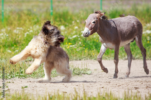 © DragoNika, Fototapeta premium Grey donkey and briard dog