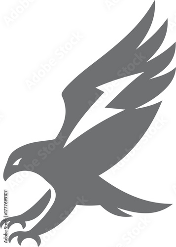 Obraz premium Grey Eagle Bird Silhouette with Lightning Bolt Wing Detail, Eagle bird...