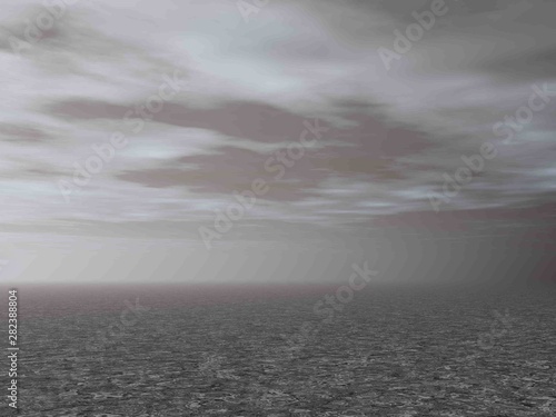 © Elenarts, Fototapeta premium Grey ground by cloudy morning background - 3D render