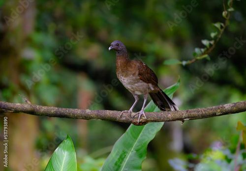 © FotoRequest, Obraz premium Grey-headed chachalaca standing on log against green background
