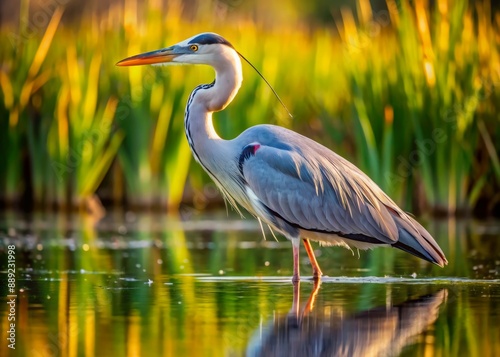 © Sirinporn, Fototapeta premium Grey heron also known as Ardea cinerea is a tall predatory wading bird that is skilled at fishing and eating