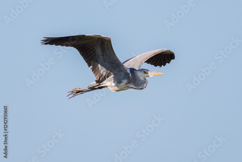 © d3_plus, Fototapeta premium 飛翔する美しいアオサギ(サギ科) 英名学名:Grey Heron (Ardea cinerea) 神奈川県清川村早戸川林道2025年