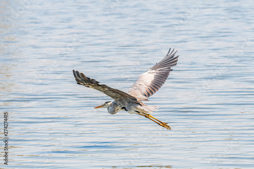Fototapeta premium Grey heron, Ardea cinerea, in flight