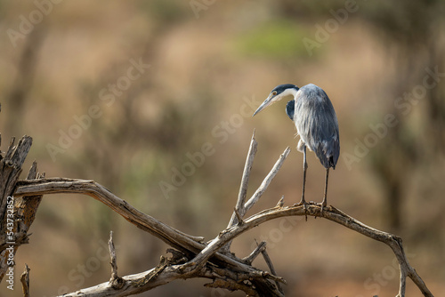 © Nick Dale, Fototapeta premium Grey heron stares down from twisted branches