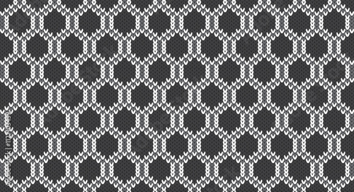 Fototapeta premium Grey hexagon knitting pattern, Festive Sweater Design. Seamless Knitted Pattern