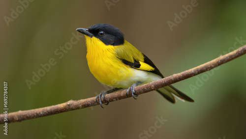 Naklejka premium Grey-hooded Warbler on a Branch A Captivating Portrait of a Small Bird in Its Natural Environment A Glimpse of Avian Life in the Forest