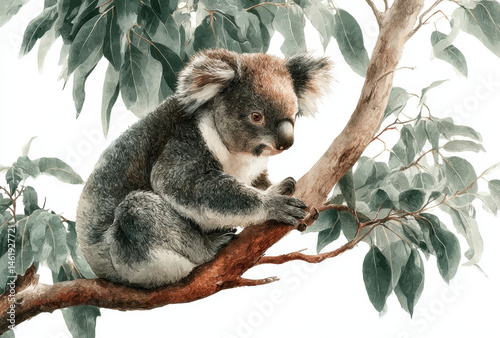 © Suppawith, Fototapeta premium Grey Koala Sitting on Eucalyptus Branch
