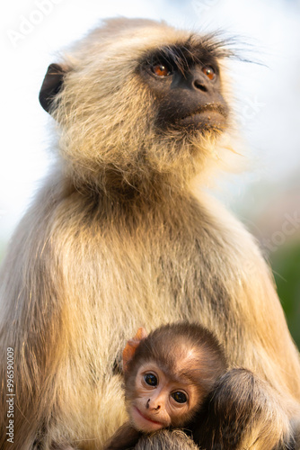 © Alix, Fototapeta premium Grey Langur with her baby