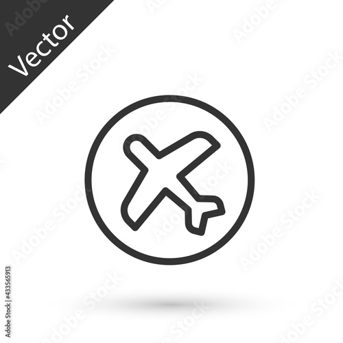 Obraz premium Grey line Plane icon isolated on white background. Flying airplane icon. Airliner sign. Vector