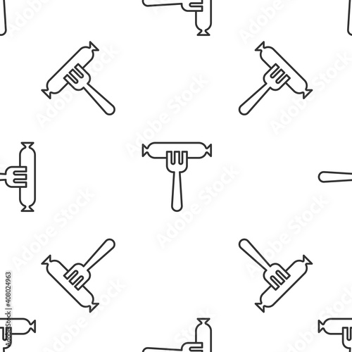 Obraz premium Grey line Sausage on the fork icon isolated seamless pattern on white...