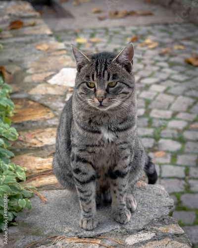 © Millenn, Fototapeta premium Grey male cat looking at the camera