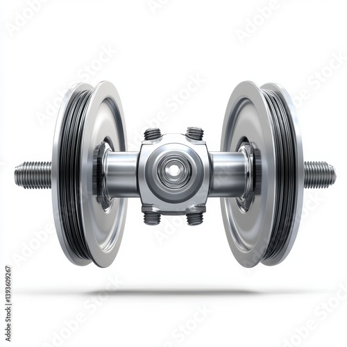 Naklejka premium Grey Metal Axle with Pulley System on White Background