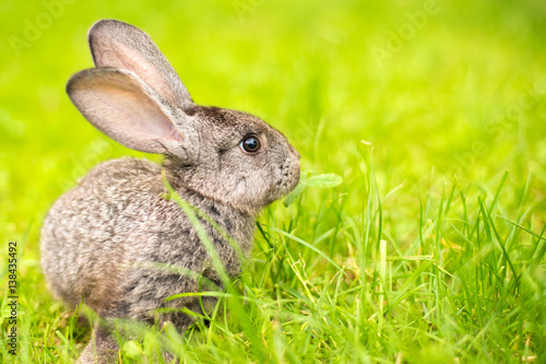 Fototapeta premium Grey rabbit in grass closeup