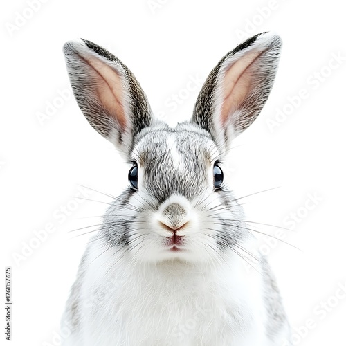 © ardanz, Obraz premium Grey rabbit portrait, close-up, white background, Easter