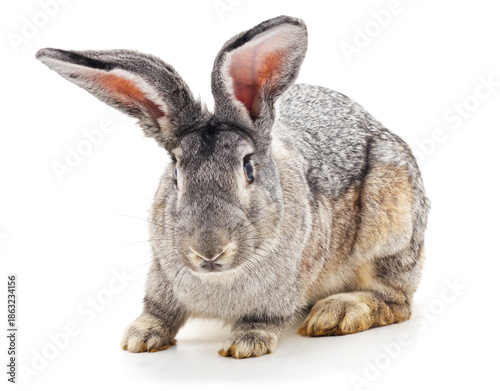 © voren1, Obraz premium Grey rabbit sitting on a white background.