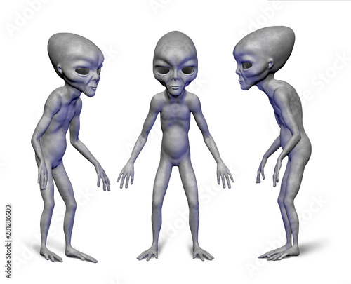 © Lena_graphics, Obraz premium Grey realistic alien in space. 3D characters. Digital illustration. Digital art. digital painting. Characters.