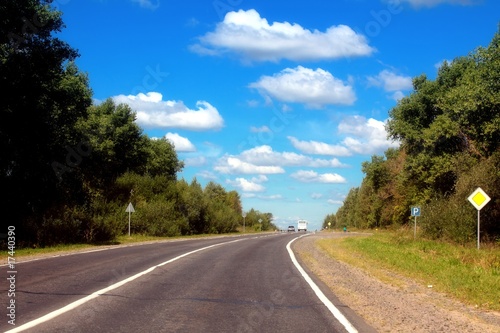 © Alex Diomidov, Fototapeta premium Grey road and blue sky