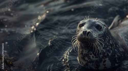 Obraz premium Grey seal on Scottish coast with sparling eyes watching everything : Generative AI